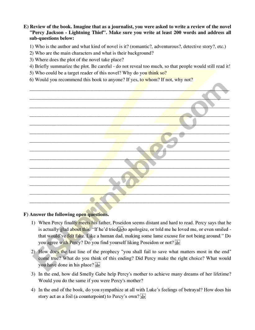 Percy Jackson Lightning Thief Chapter 21 22 Review Esl Worksheet By Luky4287